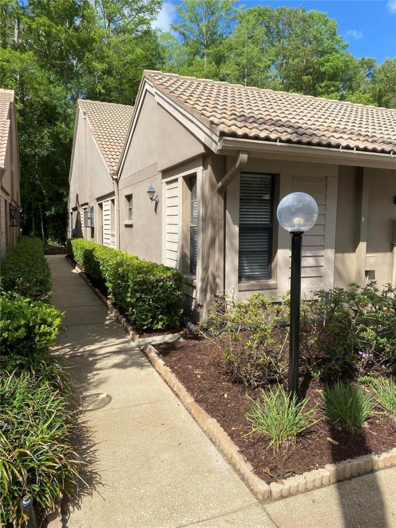 Experience easy, low-maintenance living in this fully renovated villa set on an oversized 0.48-acre homesite with peaceful preservation views. Designed with both comfort and functionality in mind, this home features a bright split floor plan, soaring vaulted ceilings, and a unique central atrium that fills the space with natural light.The interior has been extensively upgraded throughout, including 24 porcelain tile flooring (no carpet), fresh paint, 5 baseboards, and modern Decora-style switches and outlets. The inviting living area is anchored by a wood-burning fireplace adds character and creating a warm, inviting atmosphere to the main living area.The kitchen, completely redesigned in 2022, features stylish cabinetry, Natural stone calcite countertops, tile backsplash, a Bosch dishwasher, new oven, and expanded storage with additional pantry cabinets and a dedicated coffee bar. A walk-in pantry enhances everyday convenience.The primary suite serves as a private retreat and features a walk-in closet with a beautifully reimagined bathroom (Dec 2022) with a large spa-style walk-in shower, luxury fixtures, double vanity, and upgraded lighting. The guest bathroom has also been updated with granite countertops and flooring.Flexible living space includes a den with built-in shelving, commonly used as a third bedroom or home office. Each bedroom includes a walk-in closet, and new plantation-style bifold doors provide a clean, cohesive look throughout.Outdoor living is just as inviting, with a screened lanai that includes a covered area designed for relaxing or hobbies, plus updated tilework with flagstone look on both front and rear porches. The expansive lot and rear greenspace create a sense of privacy and tranquility.Additional upgrades include a Trane A/C system (Aug 2022) with transferable warranty, water softener, EV charging sub-panel (2023), and a 2-car garage with storage system, hurricane rated insulated garage door and new opener (2025). The laundry area has also been enhanced with a utility sink and cabinet.Community amenities include a solar-heated pool, and the HOA provides yard and pool maintenance.This move-in ready villa combines thoughtful upgrades, spacious design and tranquil surroundings - an exceptional opportunity you won't want to miss.