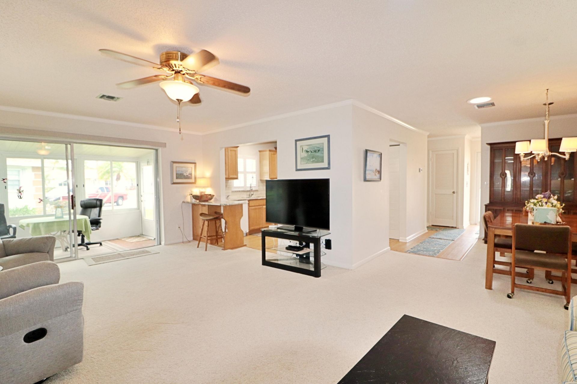 Bathed in natural light, this charming and chic, end unit, 2/2 villa offers welcoming beach cottage vibes and a lake view! Enjoy daily sunset views over the lake from your covered patio. Updating includes plantation shutters throughout, sky lights, granite kitchen, newer patio windows and updated vanities. High Point is a friendly and welcoming 55 plus community located close to beaches, golf, shopping and many recreational areas. The amenities include a club house, pool, tennis courts and shuffleboard court. Activities include a Men's Club, Women's Club, Bowling Teams, Corn Hole, Pickleball, Card Games, Bingo and more. Come and see why people truly love living in High Point.